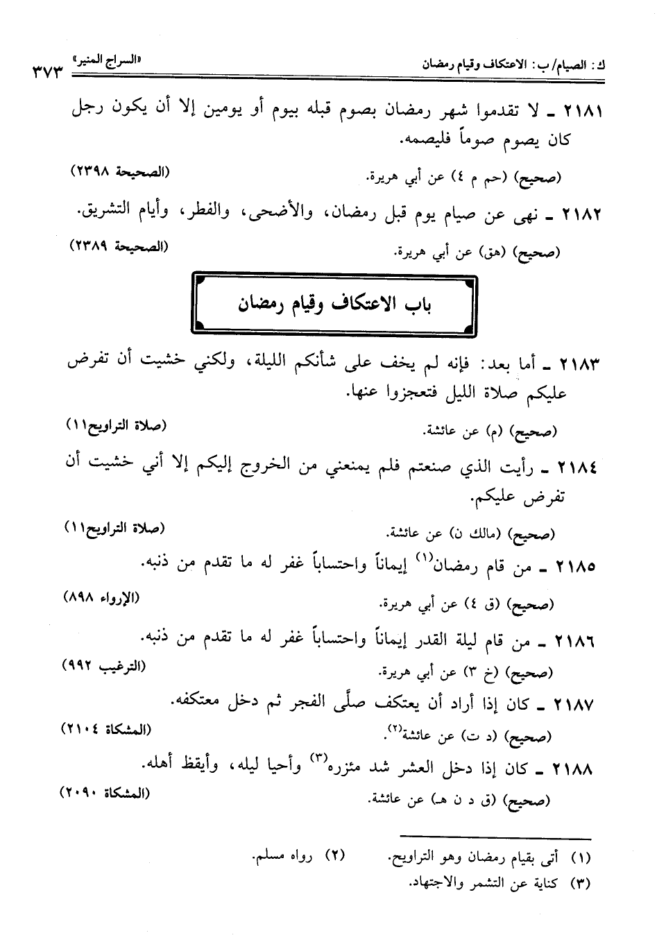 2185 - من قام رمضان (¬1) إيمانًا واحتسابًا غفر له ما تقدم من ذنبه.