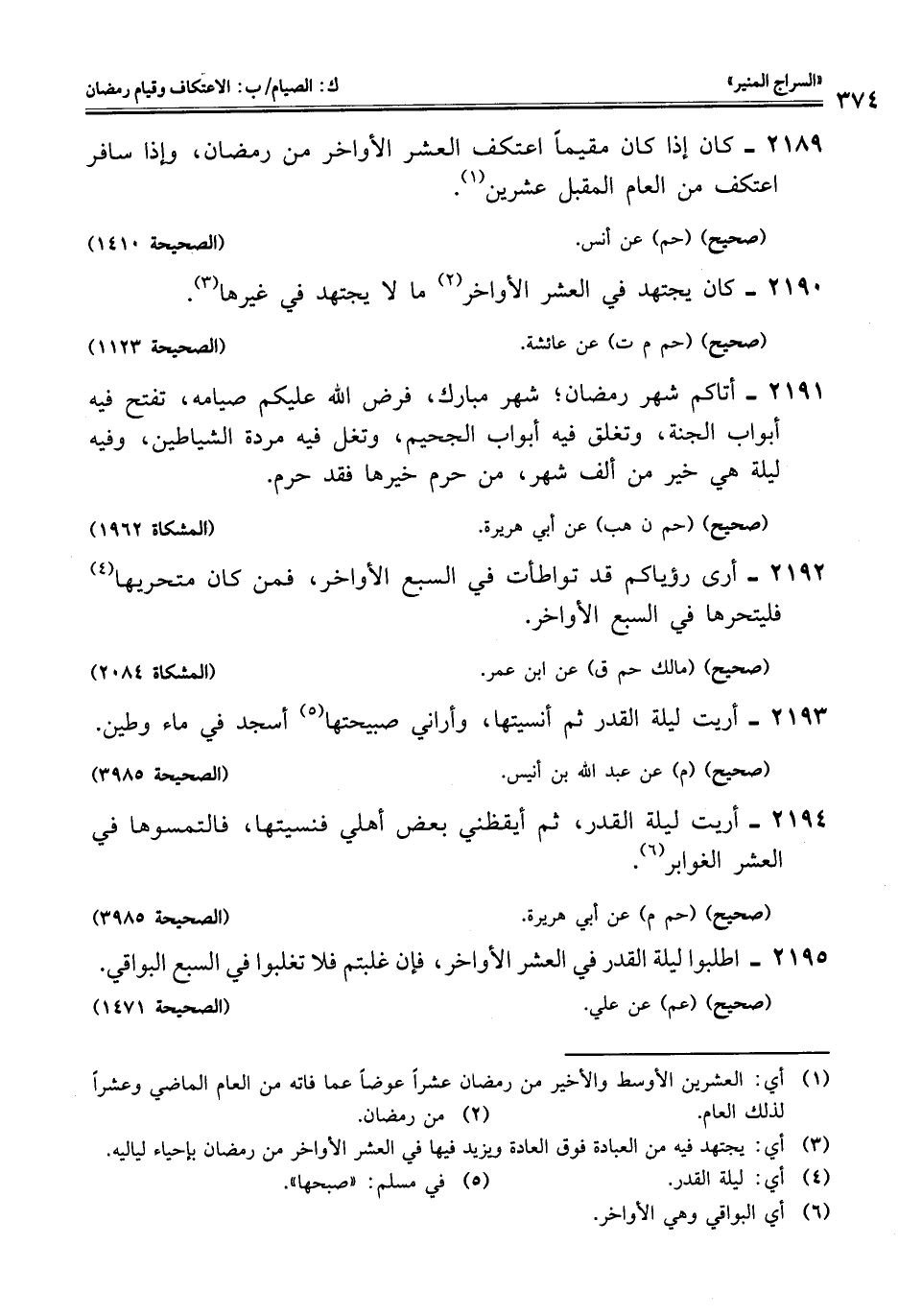 2194 - أريت ليلة القدر، ثم أيقظني بعض أهلي فنسيتها، فالتمسوها في العشر الغوابر (¬6).