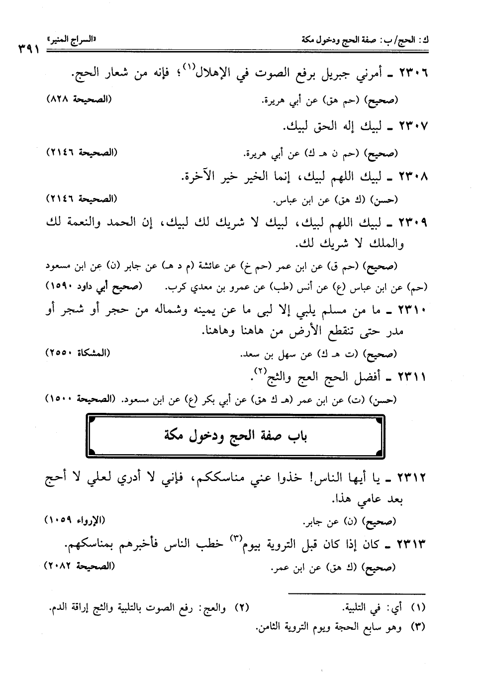 2309 - لبيك اللهم لبيك، لبيك لا شريك لك لبيك، إن الحمد والنعمة لك والملك لا شريك لك.