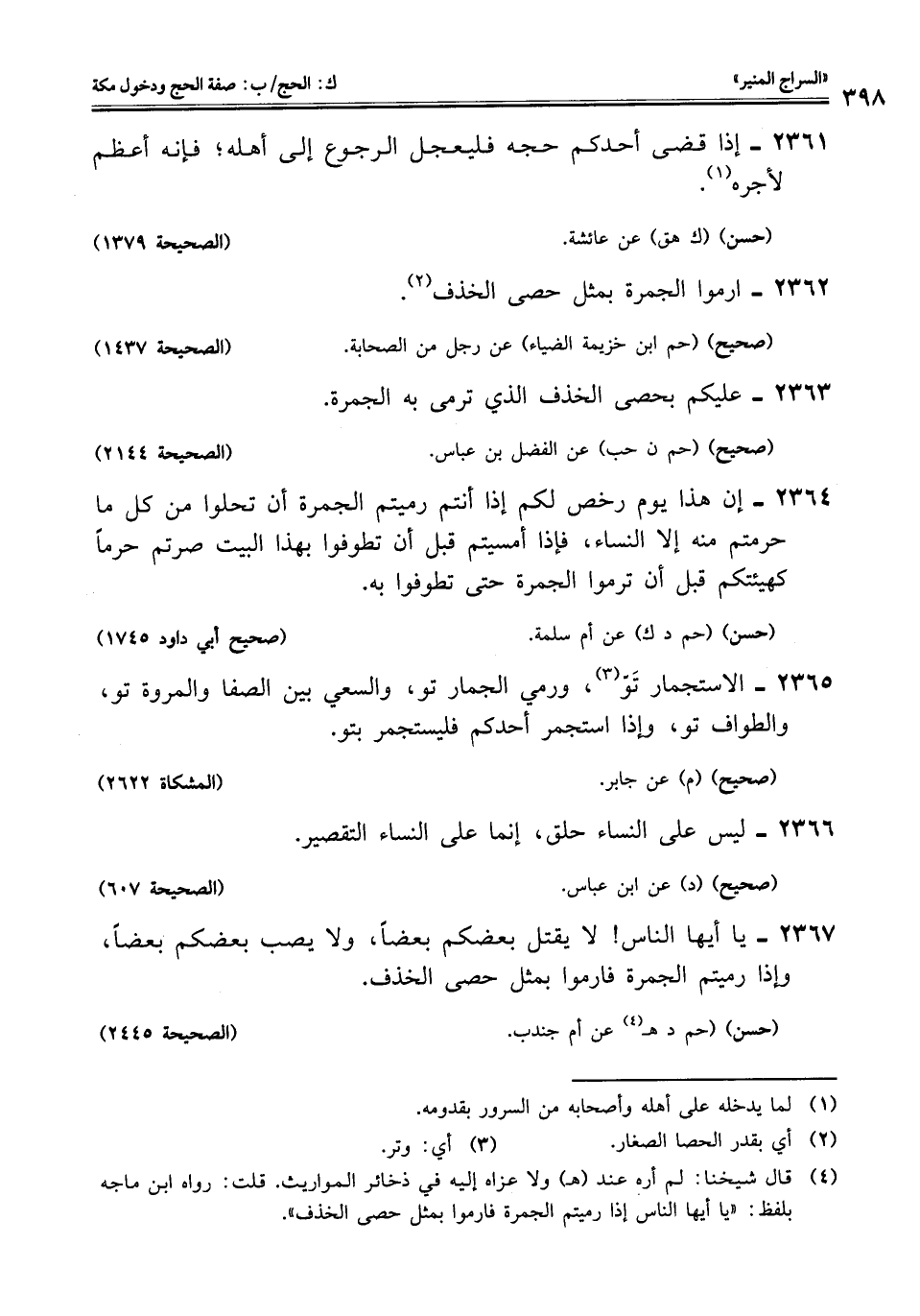 2362 - ارموا الجمرة بمثل حصى الخذف (¬2).