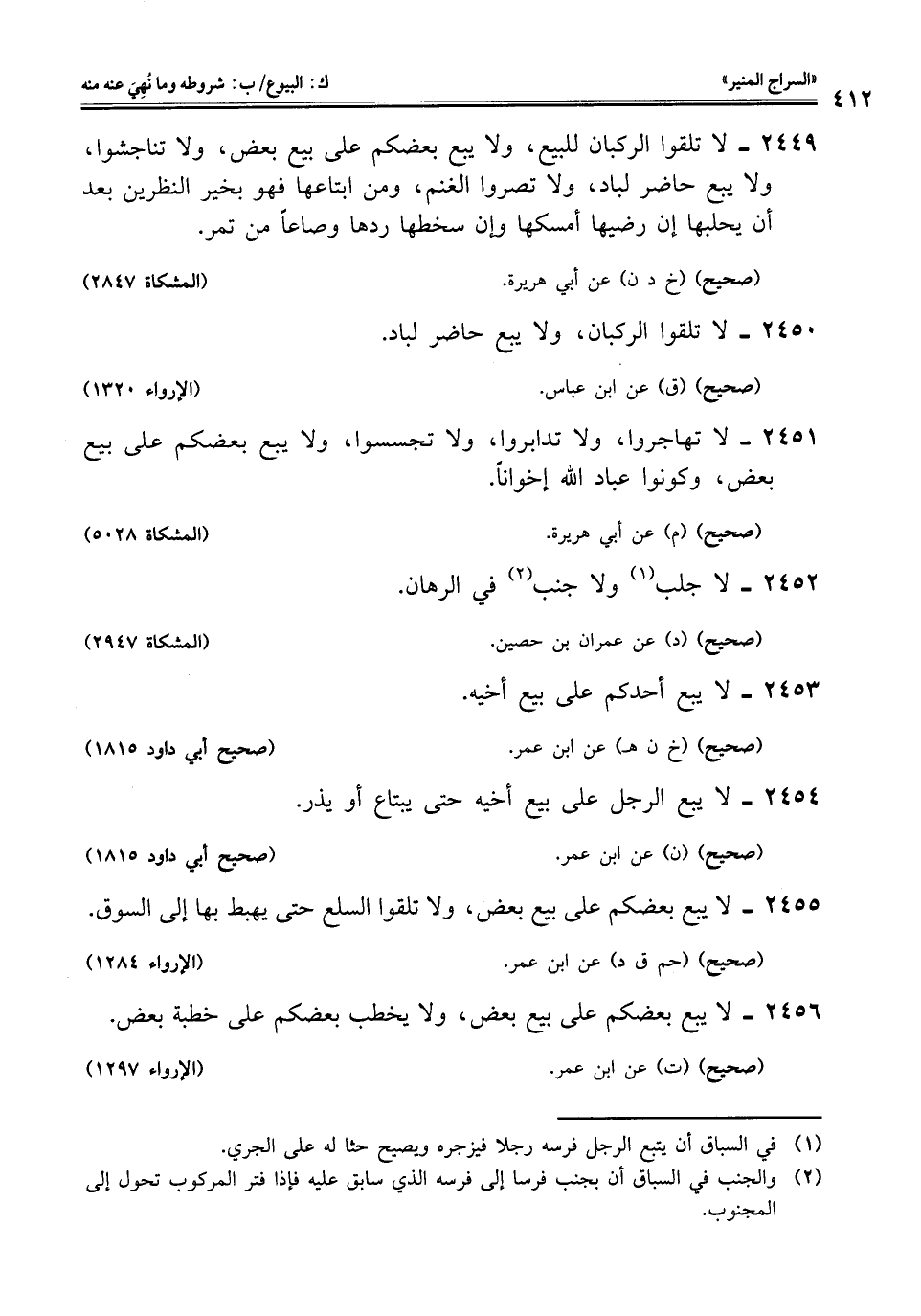 2455 - لا يبع بعضكم على بيع بعض، ولا تلقوا السلع حتى يهبط بها إلى السوق.