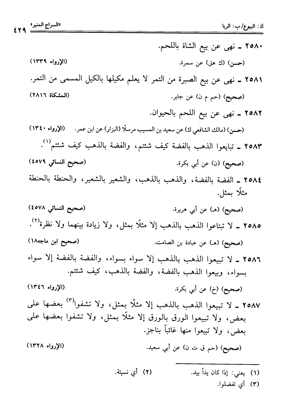 2585 - لا تبتاعوا الذهب بالذهب إلا مثلًا بمثل، ولا زيادة بينهما ولا نظرة (¬2).