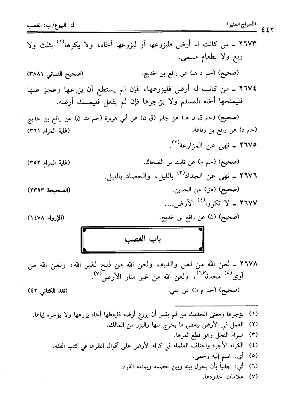 (صحيح) (حم ق ن هـ) عن جابر (ق ن) عن أبي هريرة (حم ت ن) عن رافع بن خديج (حم د) عن رافع بن رفاعة. (غاية المرام 361)