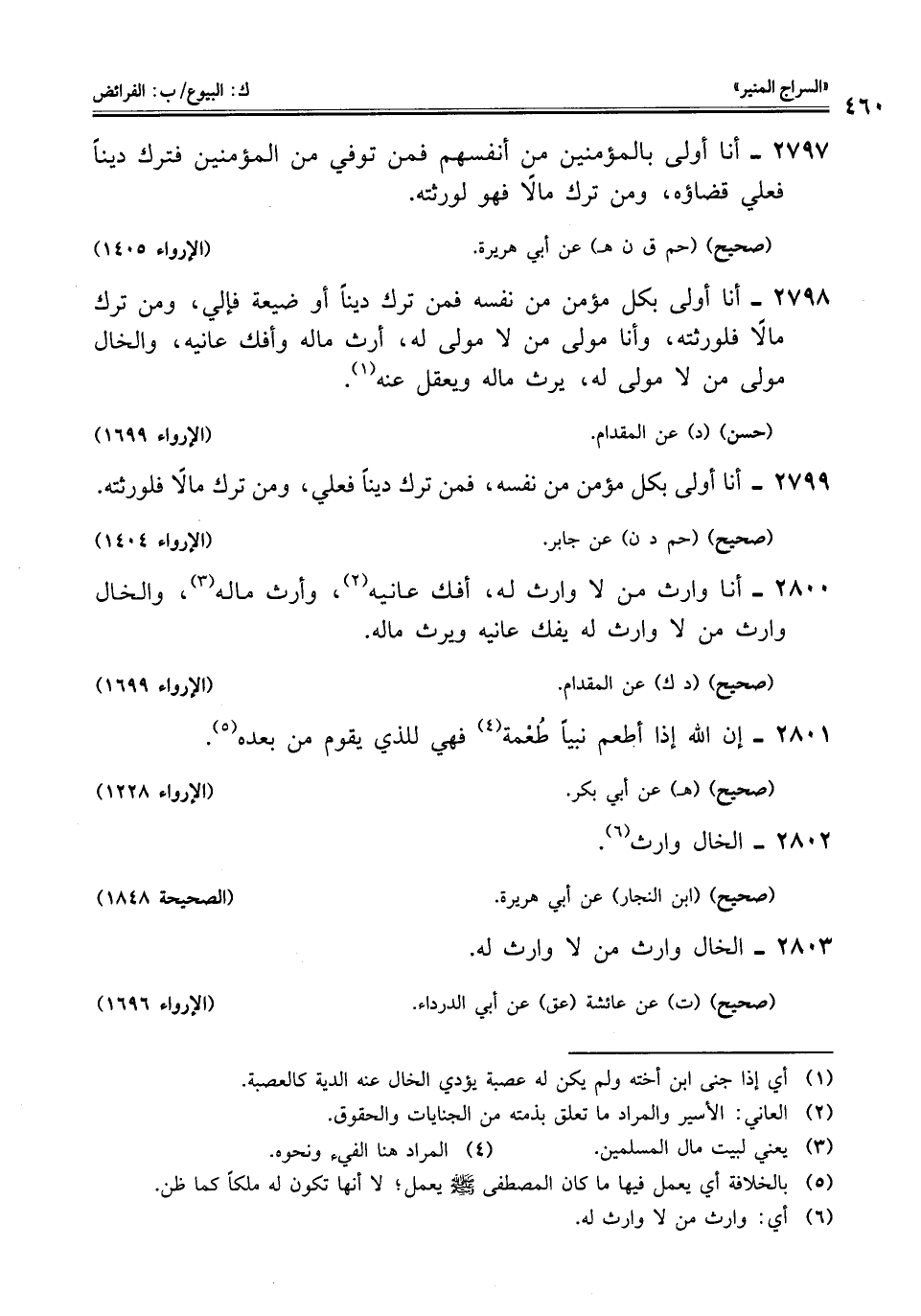 2800 - أنا وارث من لا وارث له، أفك عانيه (¬2)، وأرث ماله (¬3)، والخال وارث من لا وارث له يفك عانيه ويرث ماله.