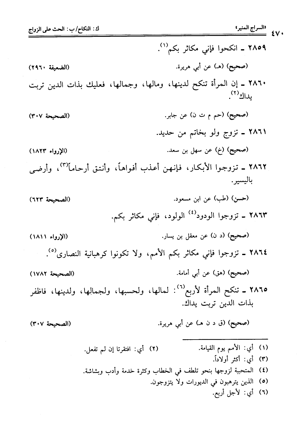 2864 - تزوجوا فإني مكاثر بكم الأمم، ولا تكونوا كرهبانية النصارى (¬5).