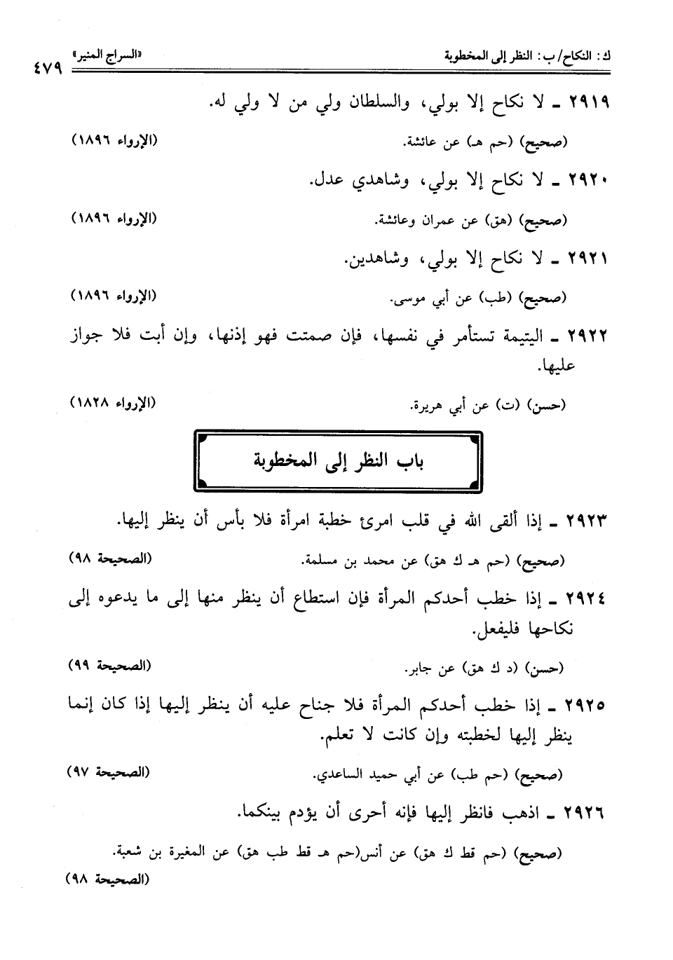 2920 - لا نكاح إلا بولي، وشاهدي عدل.