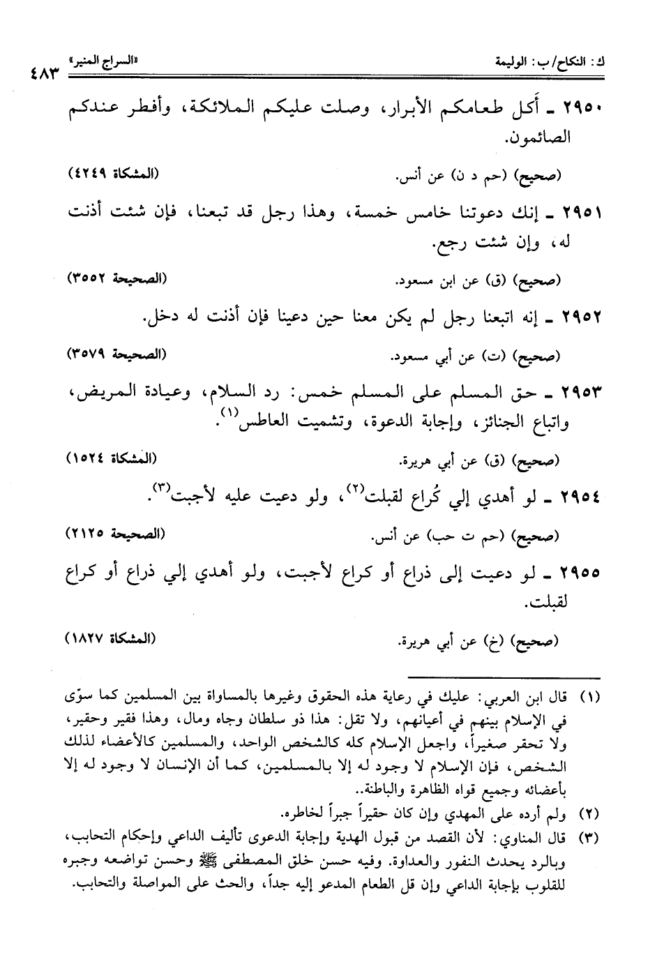 2953 - حق المسلم على المسلم خمس: رد السلام، وعيادة المريض، واتباع الجنائز، وإجابة الدعوة، وتشميت العاطس (¬1).