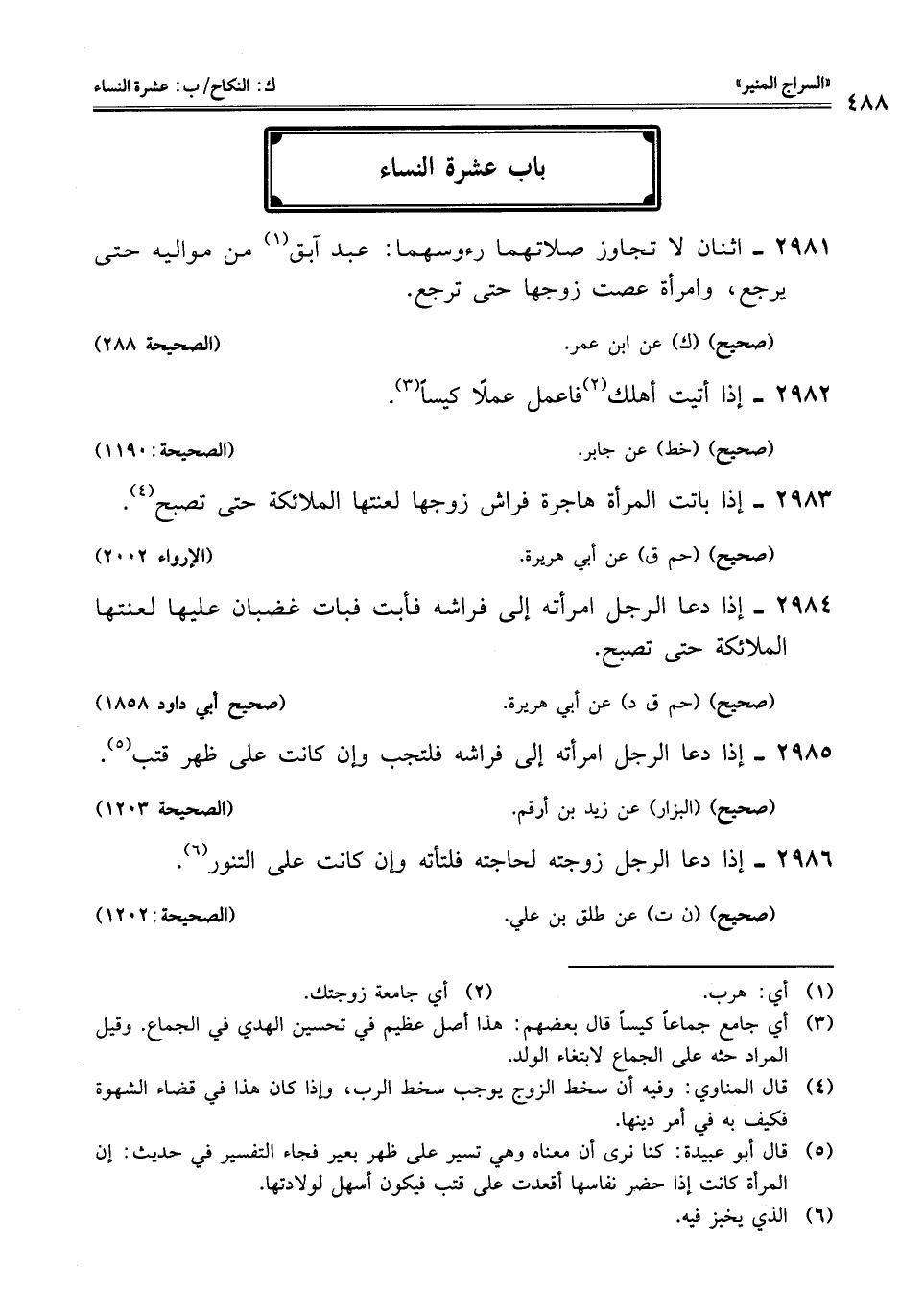 (¬4) قال المناوي: وفيه أن سخط الزوج يوجب سخط الرب، واذا كان هذا في قضاء الشهوة فكيف به في أمر دينها.