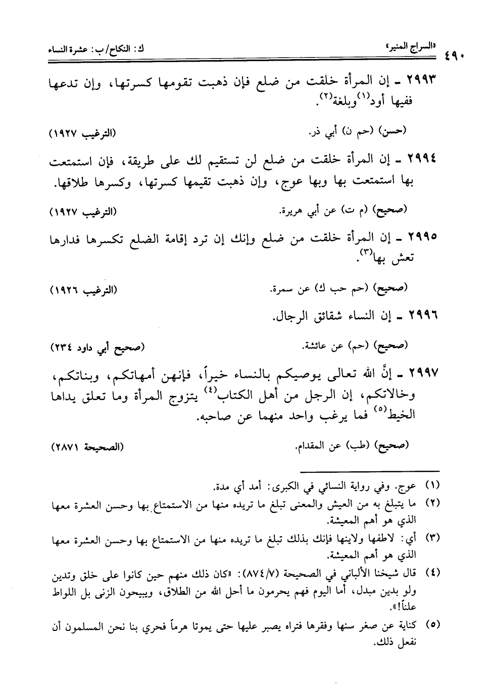 (¬5) كناية عن صغر سنها وفقرها فتراه يصبر عليها حتى يموتا هرمًا فحري بنا نحن المسلمون أن نفعل ذلك.