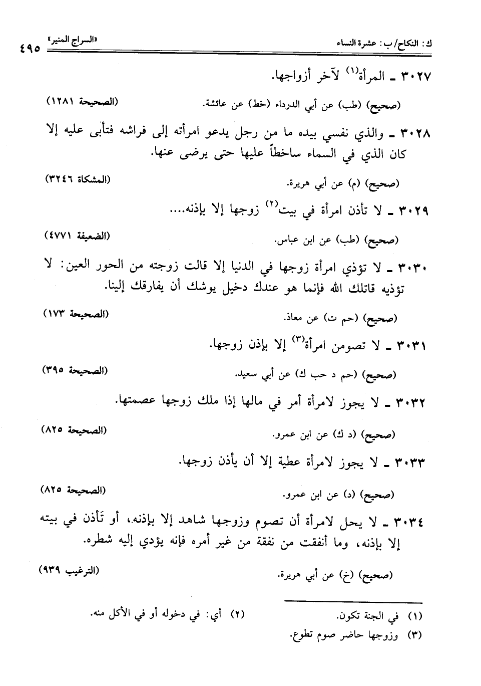 3029 - لا تأذن امرأة في بيت (¬2) زوجها إلا بإذنه. . . .
