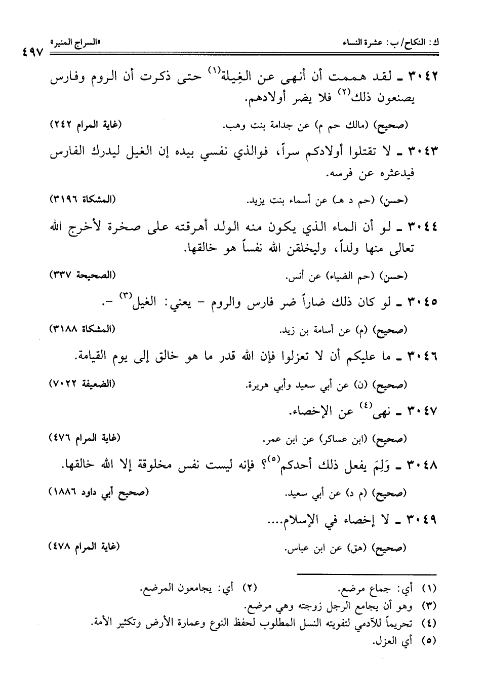 3042 - لقد هممت أن أنهى عن الغِيلة (¬1) حتى ذكرت أن الروم وفارس يصنعون ذلك (¬2) فلا يضر أولادهم.