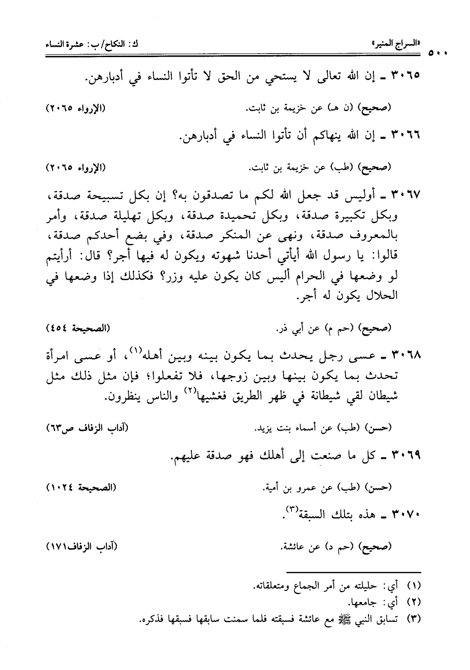 3065 - إن اللَّه تعالى لا يستحي من الحق لا تأتوا النساء في أدبارهن.
