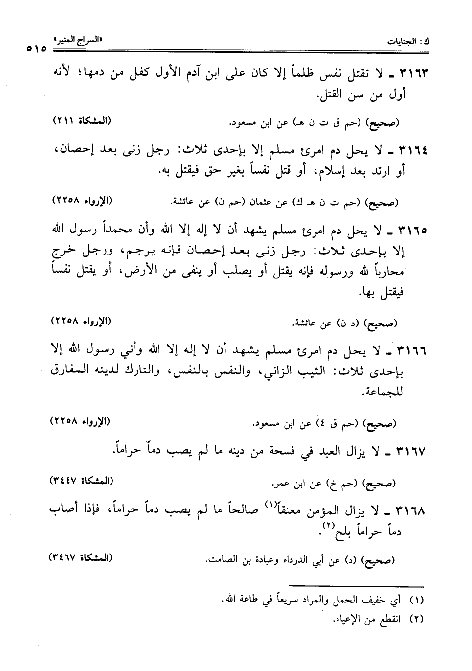 3168 - لا يزال المؤمن معنقًا (¬1) صالحًا ما لم يصب دمًا حرامًا، فإذا أصاب دمًا حرامًا بلح (¬2).