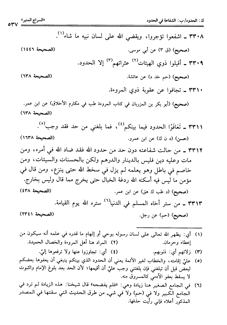 3309 - أقيلوا ذوي الهيئات (¬2) عثراتهم (¬3) إلا الحدود.