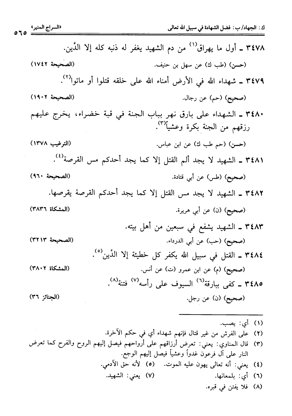 3479 - شهداء اللَّه في الأرض أمناء اللَّه على خلقه قتلوا أو ماتوا (¬2).