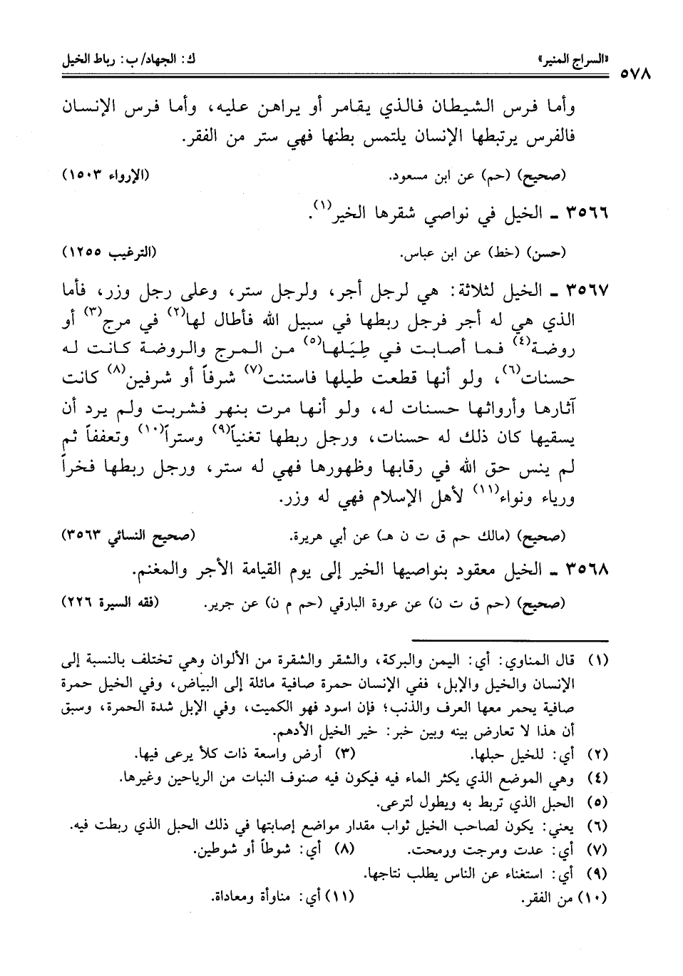 3568 - الخيل معقود بنواصيها الخير إلى يوم القيامة الأجر والمغنم.