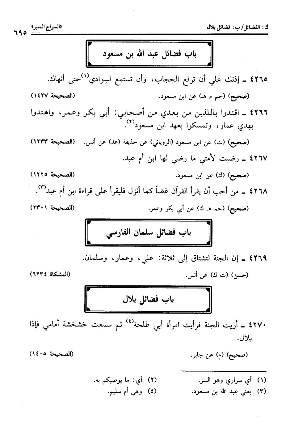 4266 - اقتدوا باللذين من بعدي من أصحابي: أبي بكر وعمر، واهتدوا بهدي عمار، وتمسكوا بعهد ابن مسعود (¬2).