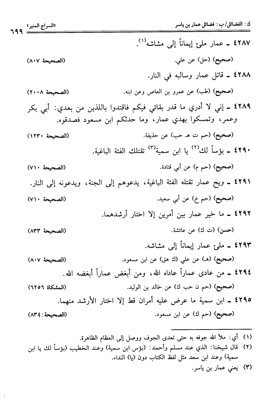 4287 - عمار ملئ إيمانًا إلى مشاشه (¬1).
