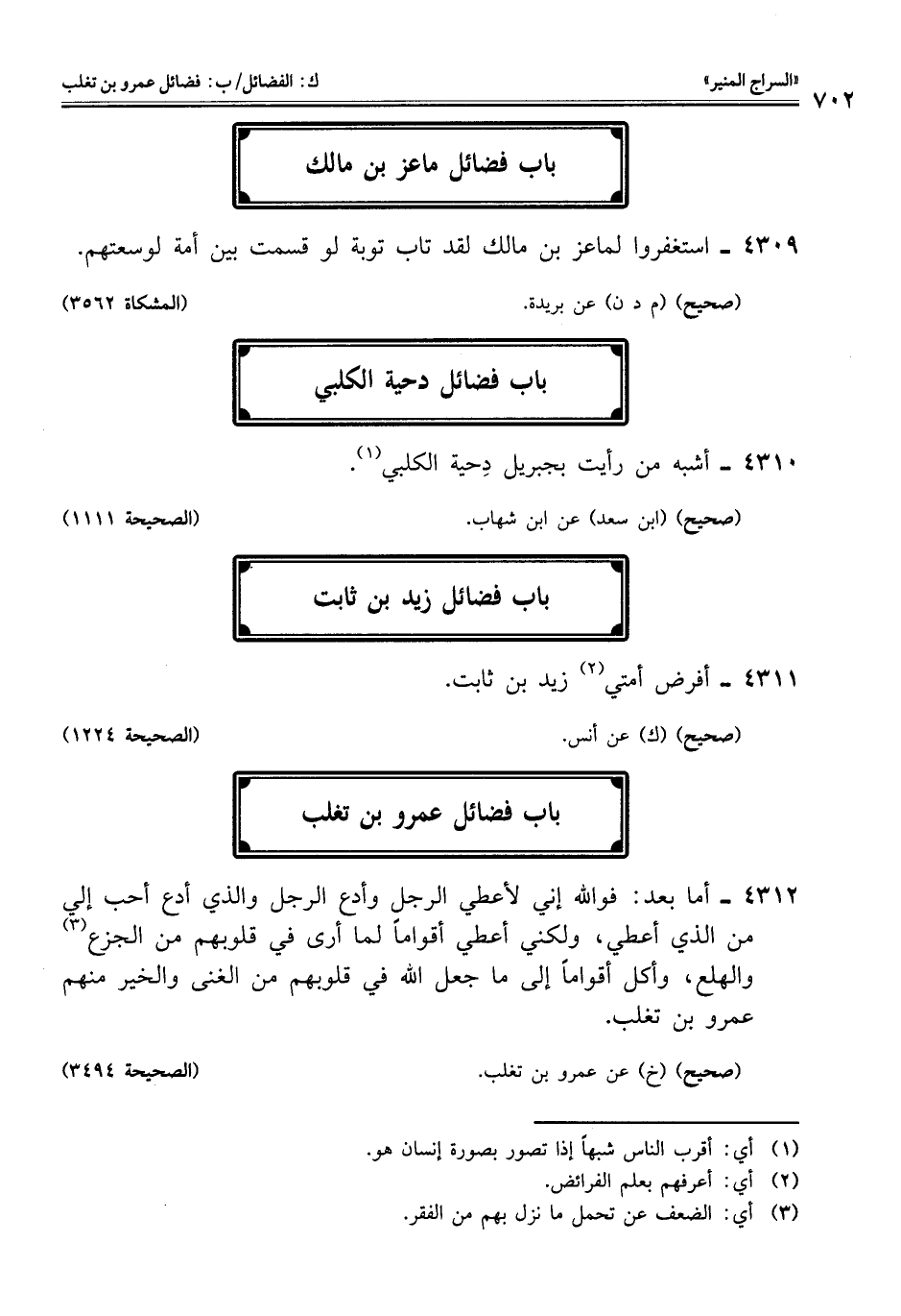 كتاب السراج المنير في ترتيب أحاديث صحيح الجامع الصغير (اسم الجزء: 2)