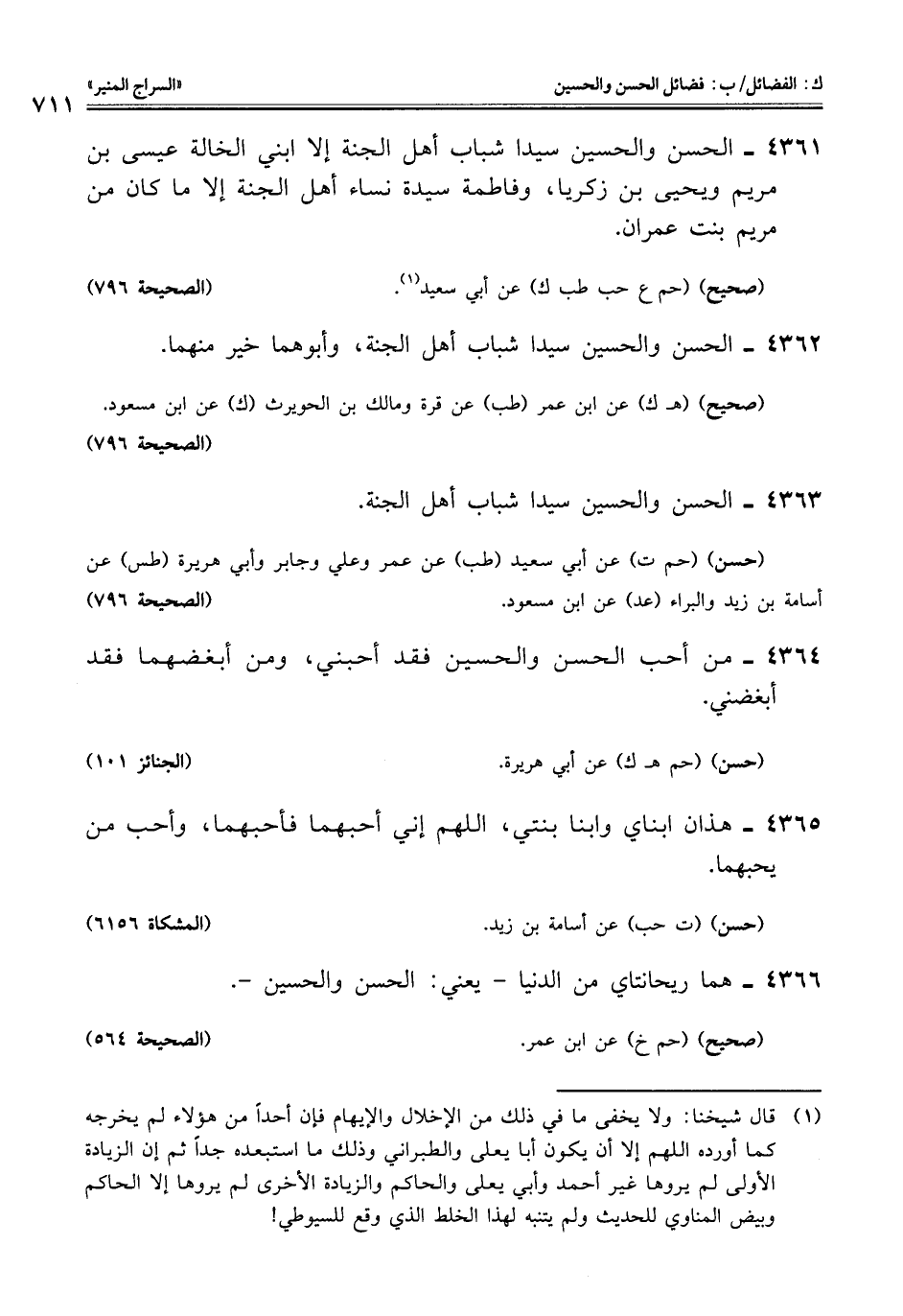 4365 - هذان ابناي وابنا بنتي، اللهم إني أحبهما فأحبهما، وأحب من يحبهما.