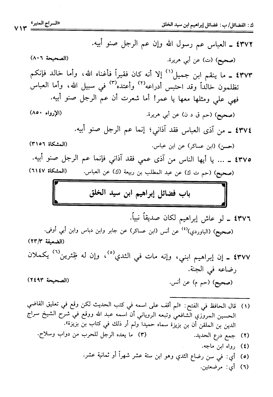 4374 - من آذى العباس فقد آذاني؛ إنما عم الرجل صنو أبيه.