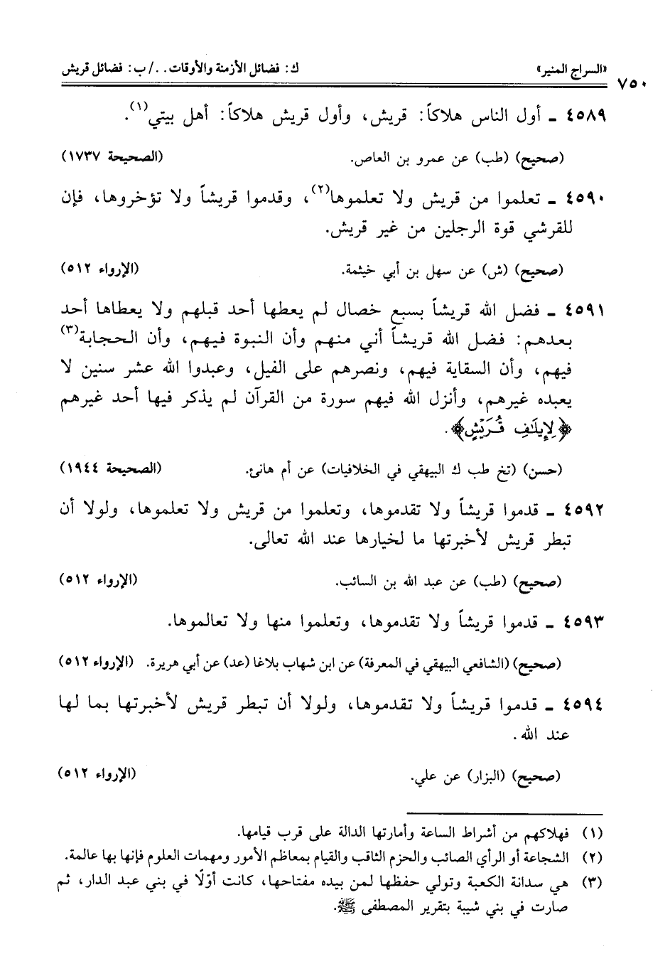 4593 - قدموا قريشًا ولا تقدموها، وتعلموا منها ولا تعالموها.