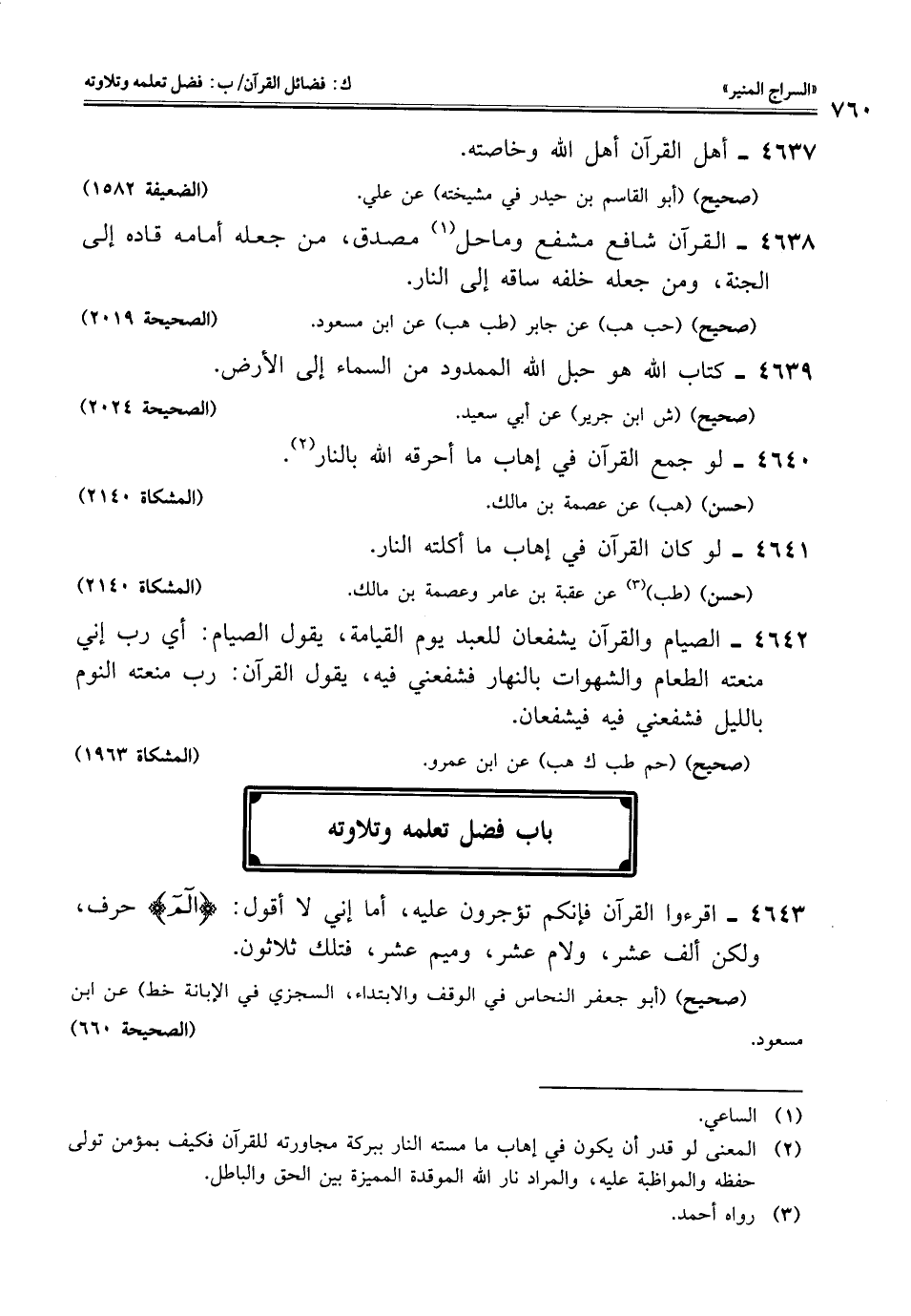 4639 - كتاب اللَّه هو حبل اللَّه الممدود من السماء إلى الأرض.