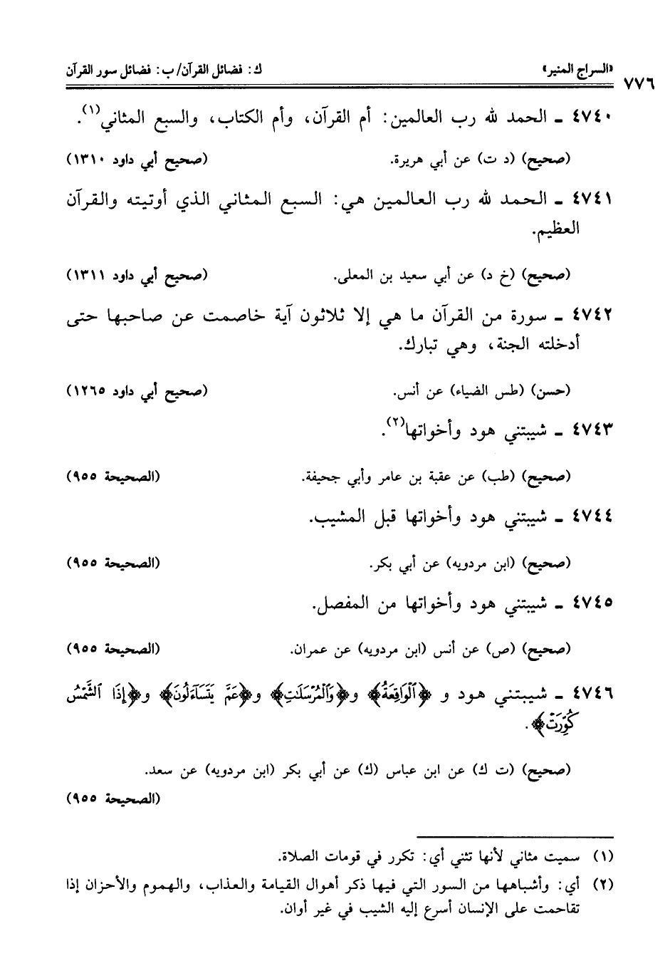 4740 - الحمد للَّه رب العالمين: أم القرآن، وأم الكتاب، والسبع المثاني (¬1).
