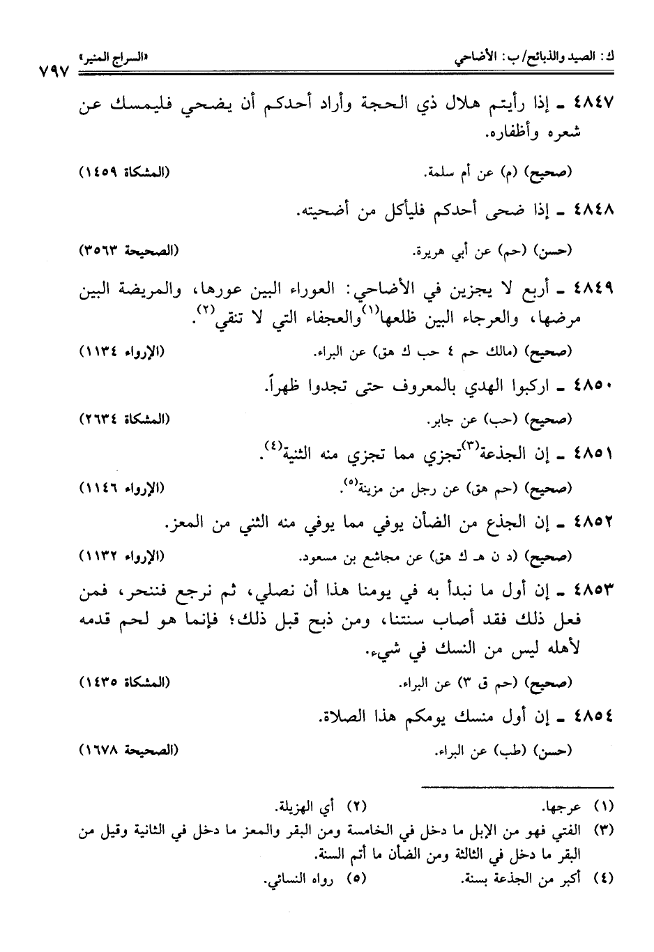 4849 - أربع لا يجزين في الأضاحي: العوراء البين عورها، والمريضة البين مرضها، والعرجاء البين ظلعها (¬1) والعجفاء التي لا تنقي (¬2).