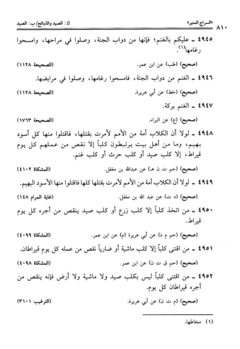 4951 - من اقتنى كلبًا إلا كلب ماشية أو ضاريًا نقص من عمله كل يوم قيراطان.