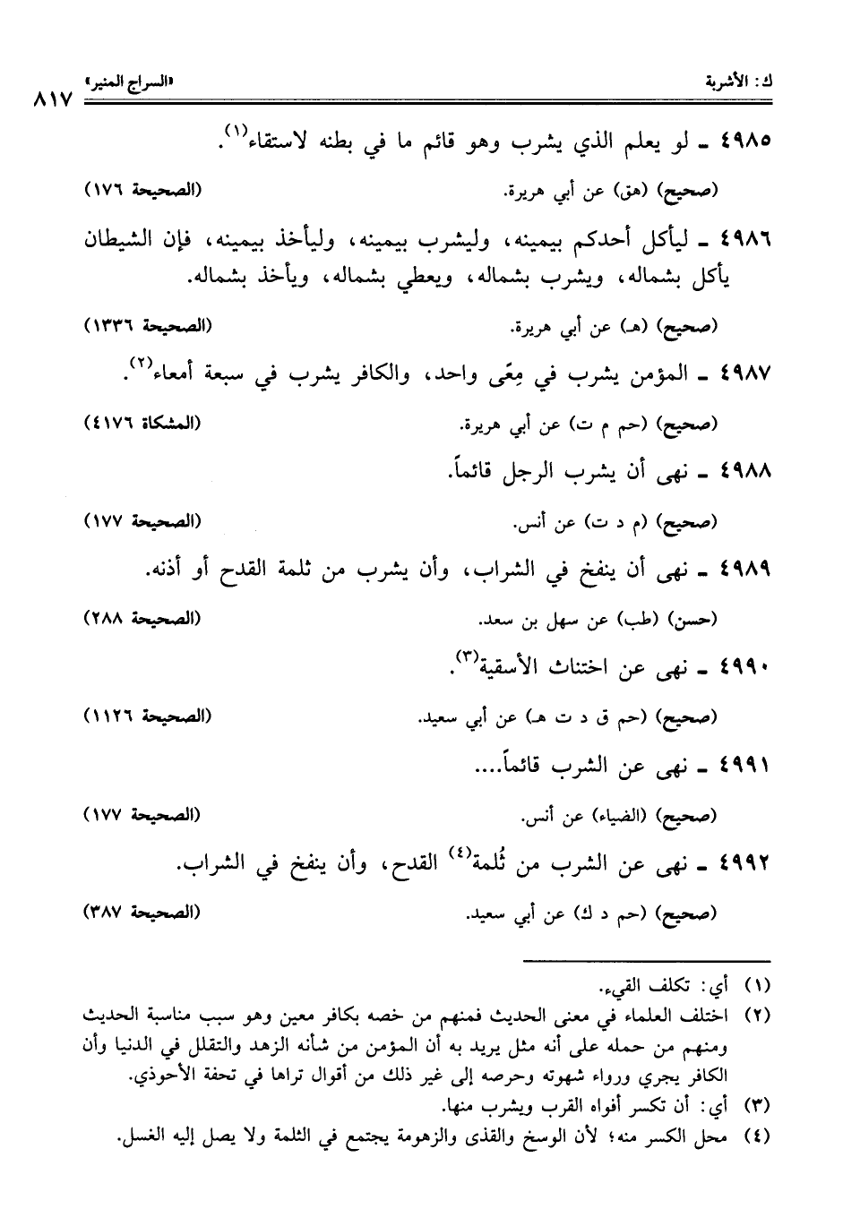 4987 - المؤمن يشرب في مِعَى واحد، والكافر يشرب في سبعة أمعاء (¬2).