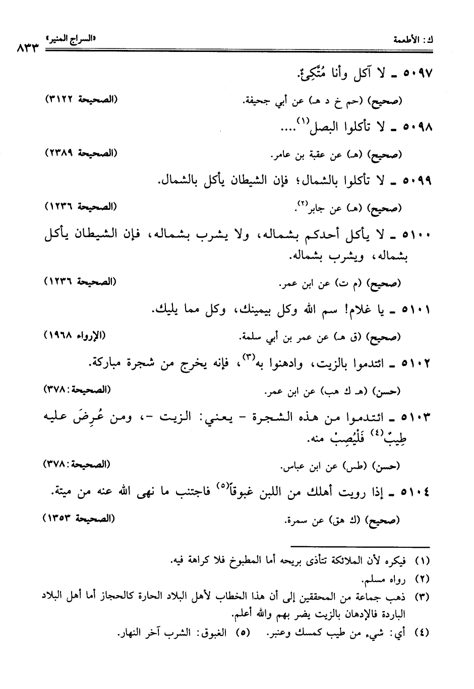 5099 - لا تاكلوا بالشمال؛ فإن الشيطان يأكل بالشمال.