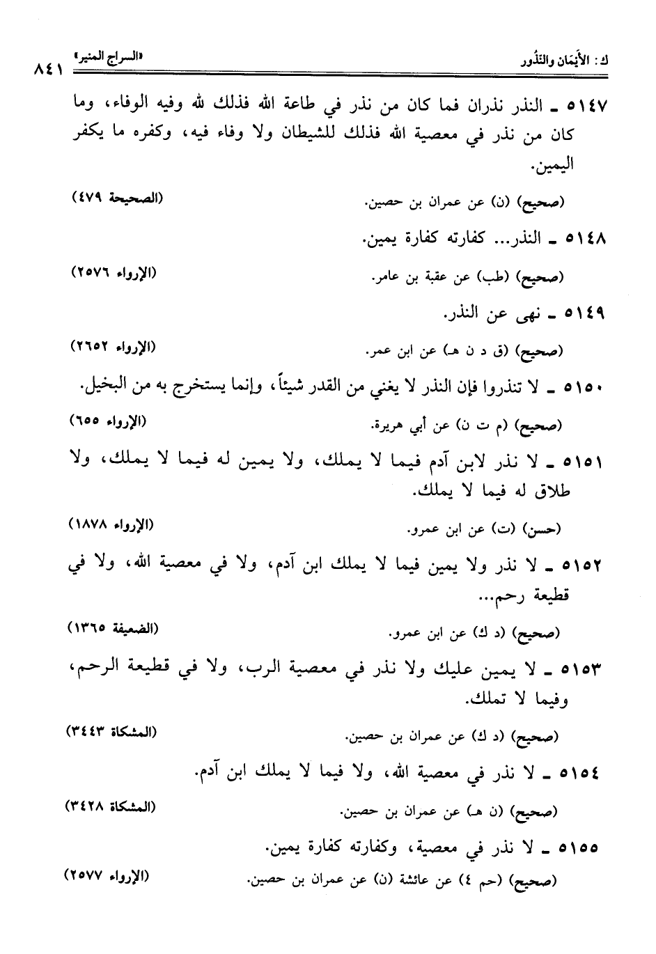 5153 - لا يمين عليك ولا نذر في معصية الرب، ولا في قطيعة الرحم، وفيما لا تملك.