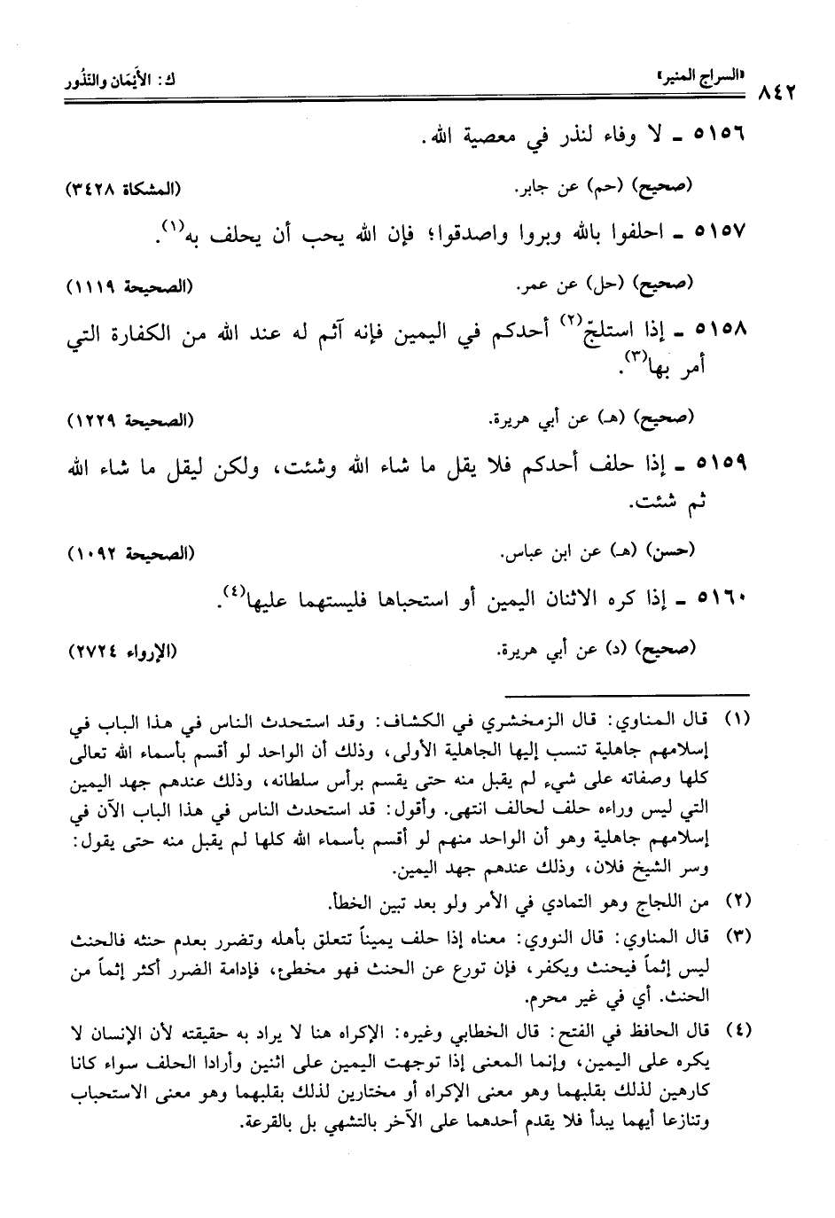 5156 - لا وفاء لنذر في معصية اللَّه.