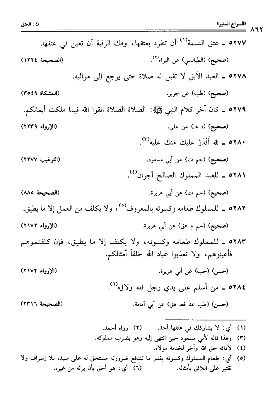 5282 - للمملوك طعامه وكسوته بالمعروف (¬5)، ولا يكلف من العمل إلا ما يطيق.