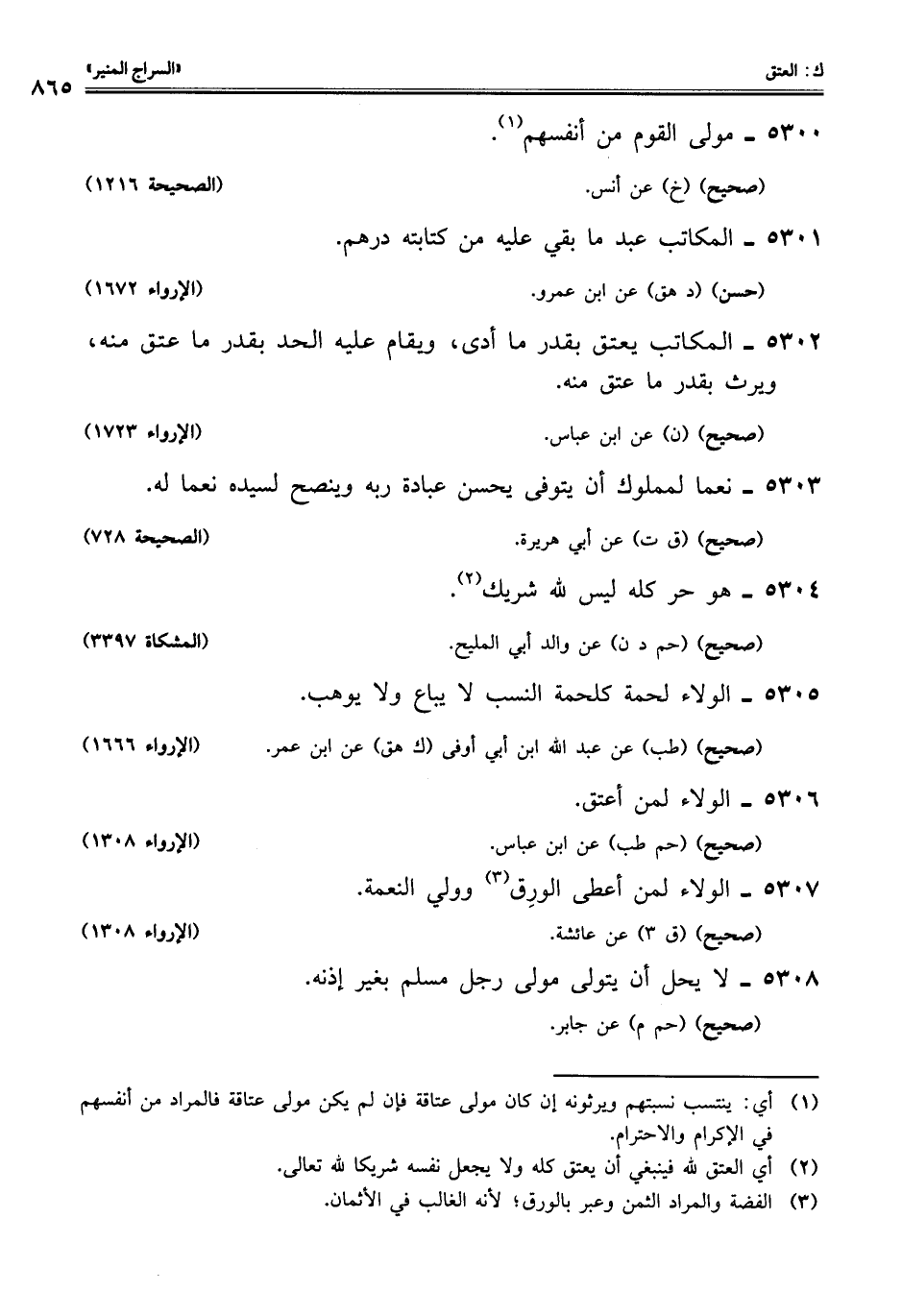 5307 - الولاء لمن أعطى الورِق (¬3) وولي النعمة.