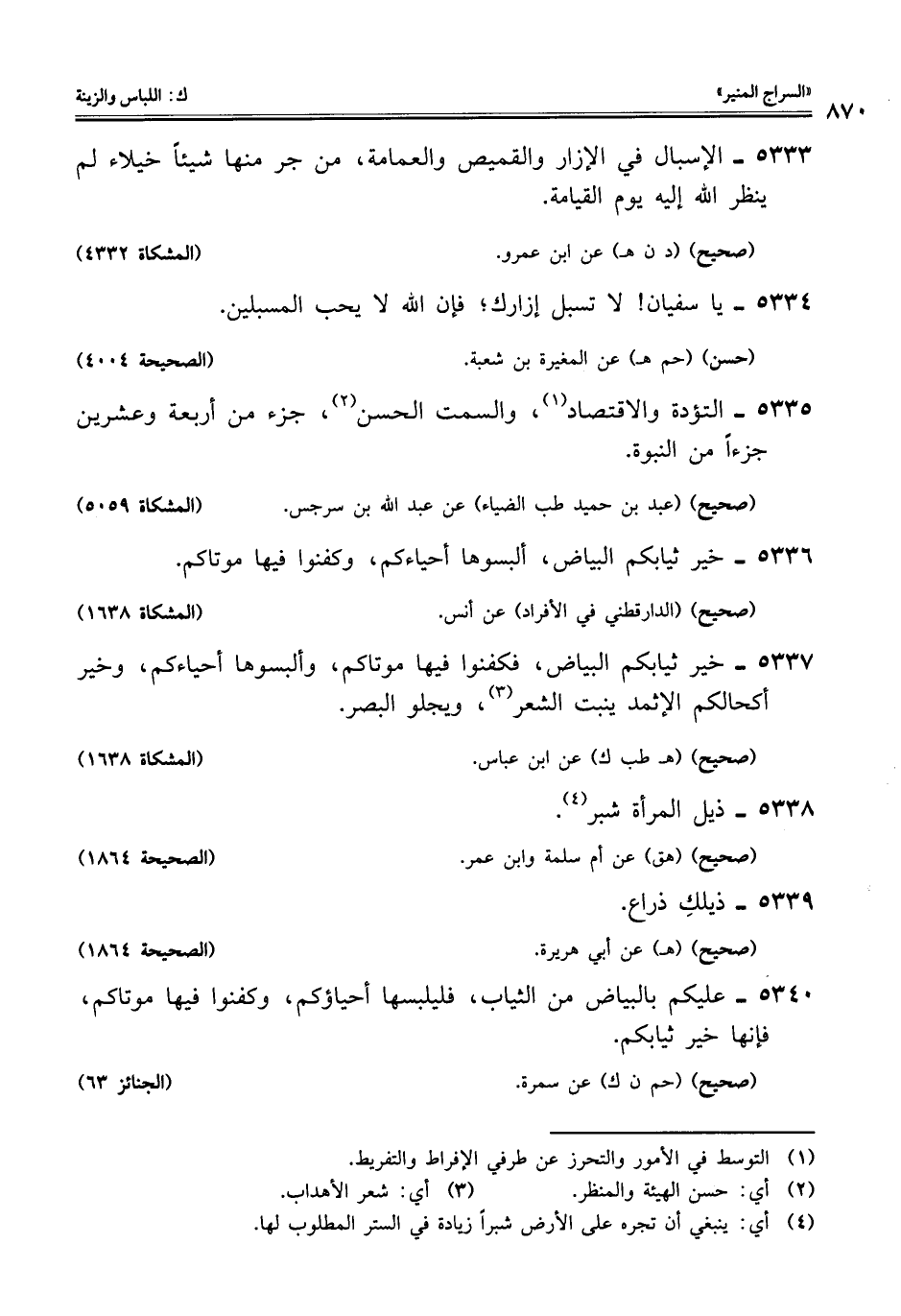 5336 - خير ثيابكم البياض، ألبسوها أحياءكم، وكفنوا فيها موتاكم.