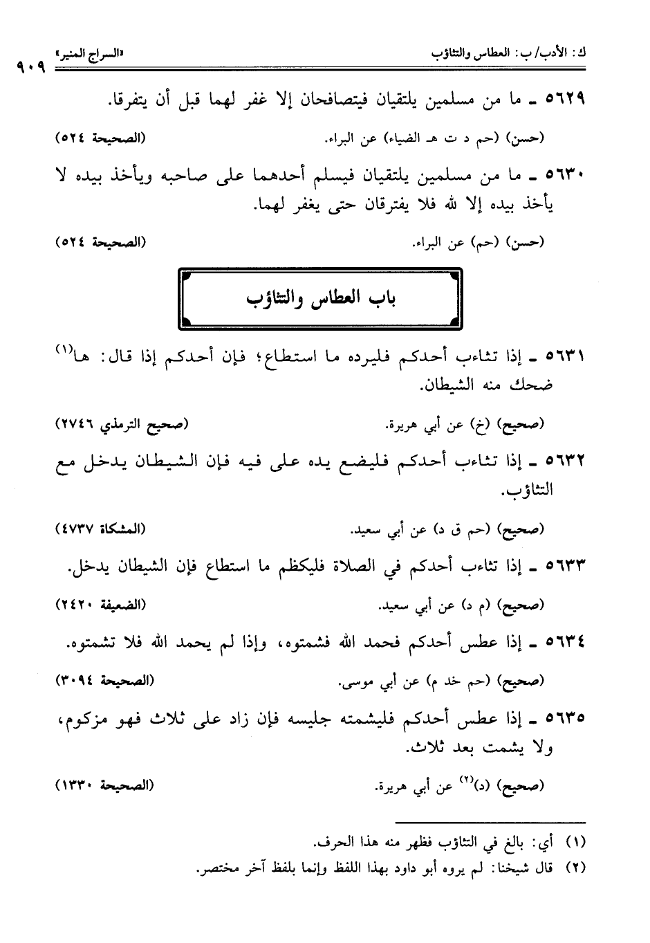 كتاب السراج المنير في ترتيب أحاديث صحيح الجامع الصغير (اسم الجزء: 2)