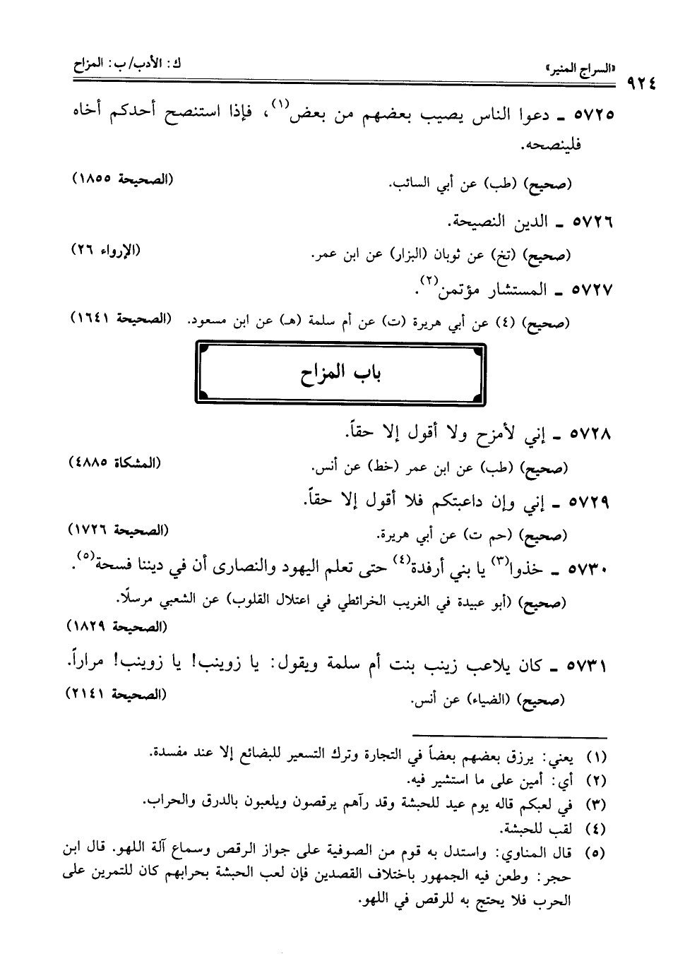 5730 - خذوا (¬3) يا بني أرفدة (¬4) حتى تعلم اليهود والنصارى أن في ديننا فسحة (¬5).