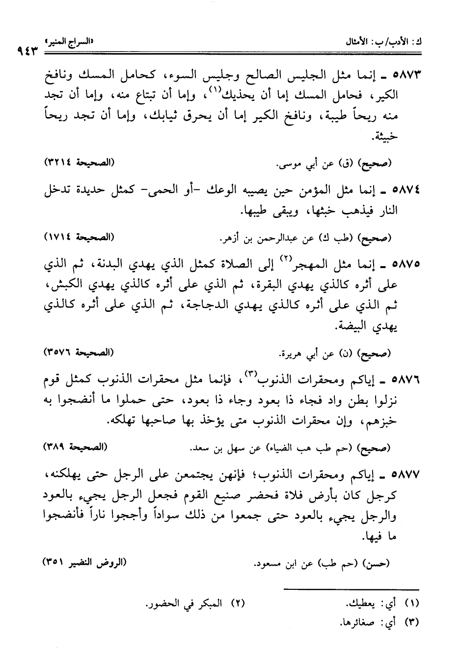 كتاب السراج المنير في ترتيب أحاديث صحيح الجامع الصغير (اسم الجزء: 2)