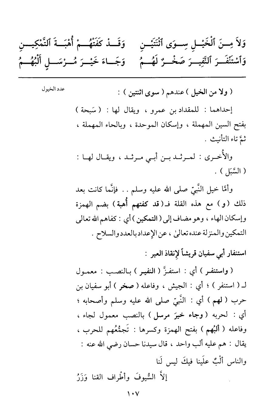 ولا من الخيل سوى اثنتين ... وقد كفتهم أهبة التّمكين