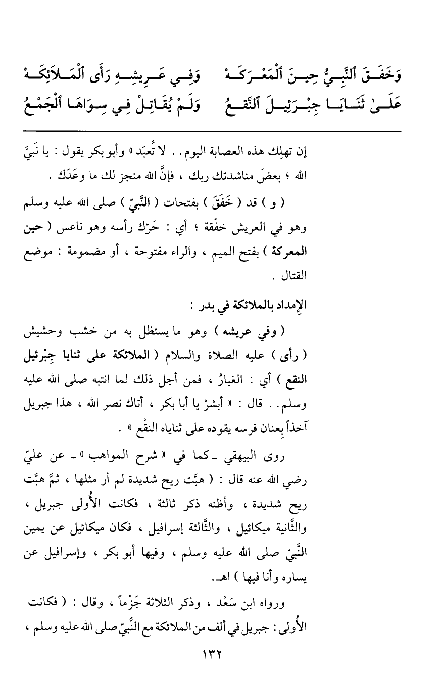 وخفق النّبيّ حين المعركه ... وفي عريشه رأى الملائكه