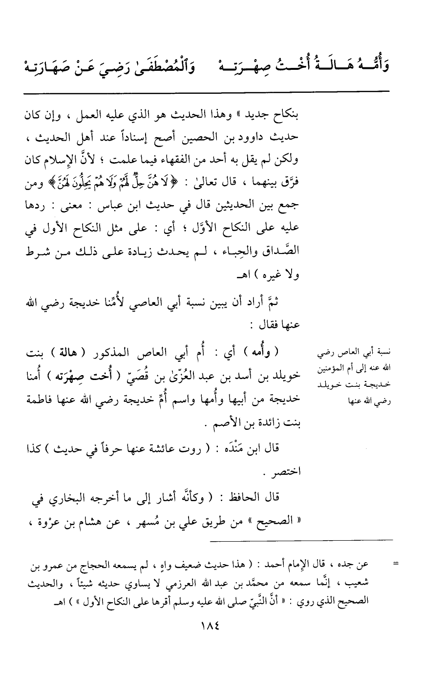 ثمّ أراد أن يبين نسبة أبي العاصي لأمّنا خديجة رضي الله عنها فقال:
