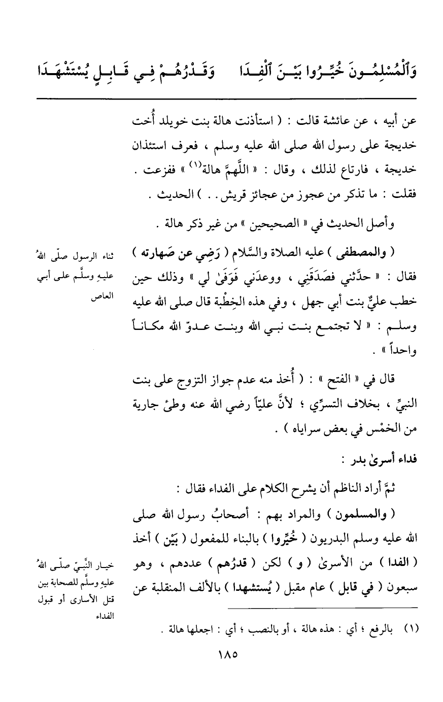والمسلمون خيّروا بين الفدا ... وقدرهم في قابل يستشهدا