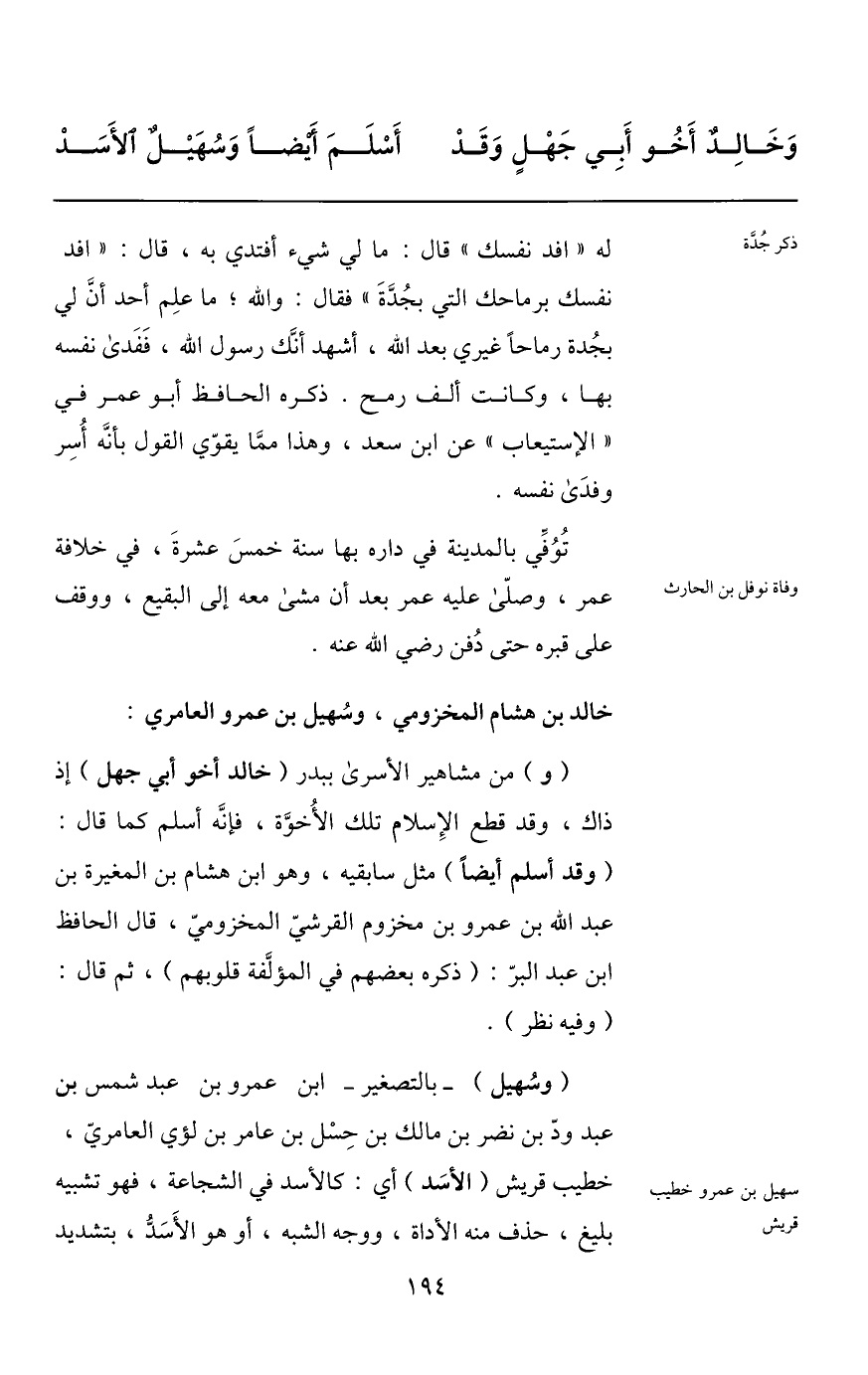 وخالد أخو أبي جهل وقد ... أسلم أيضا وسهيل الأسد