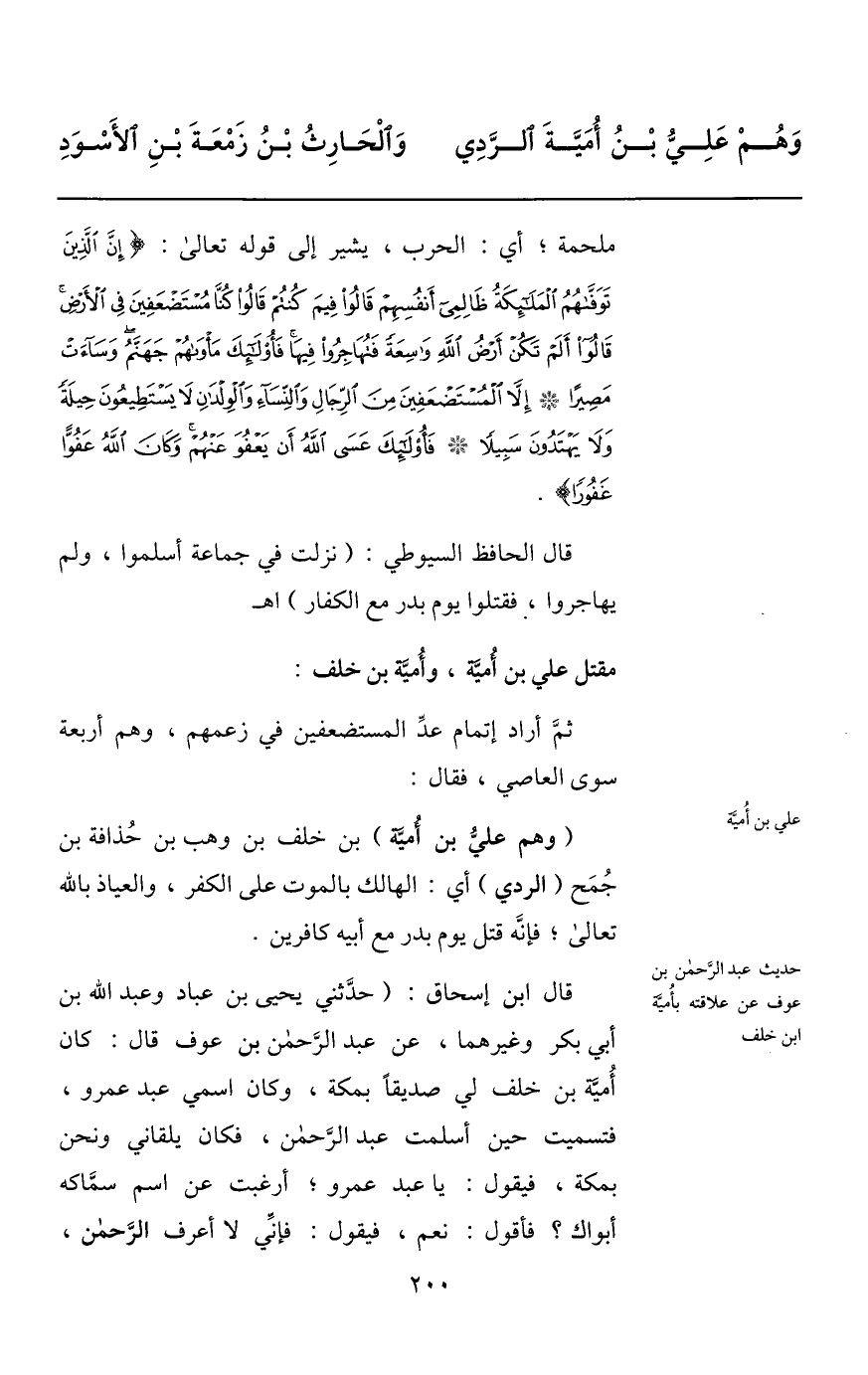 قال الحافظ السيوطي: (نزلت في جماعة أسلموا، ولم يهاجروا، فقتلوا يوم بدر مع الكفار) اهـ