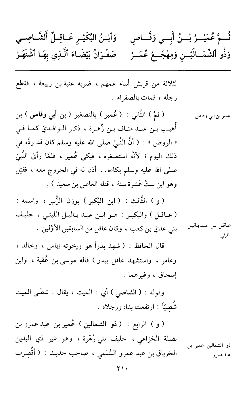 ثمّ عمير بن أبي وقّاص ... وابن البكير عاقل ألشّاصي