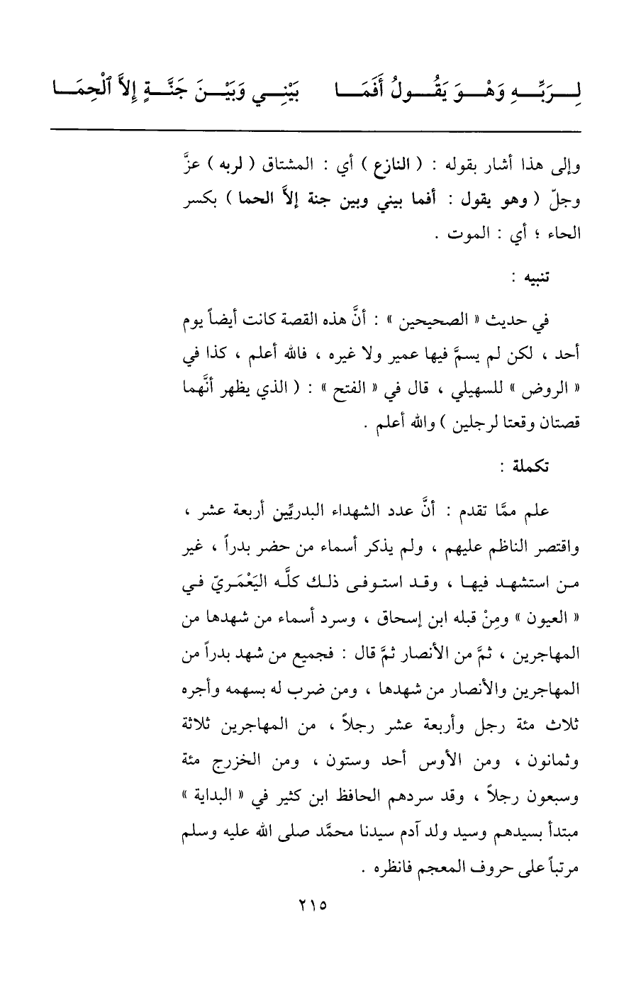 لربّه وهو يقول أفما ... بيني وبين جنّة إلّا الحما