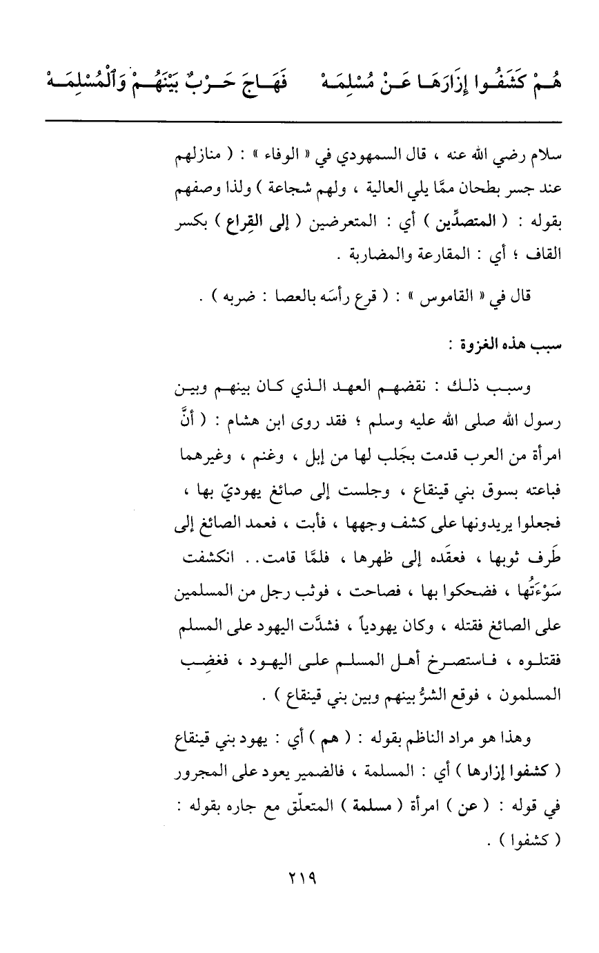 وهذا هو مراد الناظم بقوله: (هم) أي: يهود بني قينقاع (كشفوا إزارها) أي: المسلمة، فالضمير يعود على المجرور في قوله: (عن) امرأة (مسلمة) المتعلّق مع جاره بقوله: