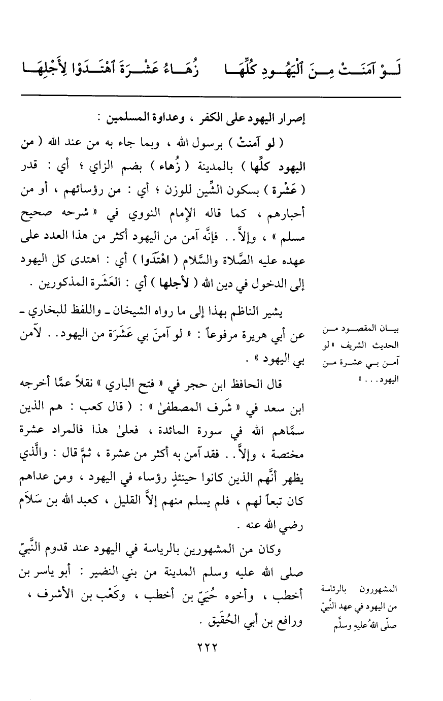 لو آمنت من اليهود كلّها ... زهاء عشرة اهتدوا لأجلها